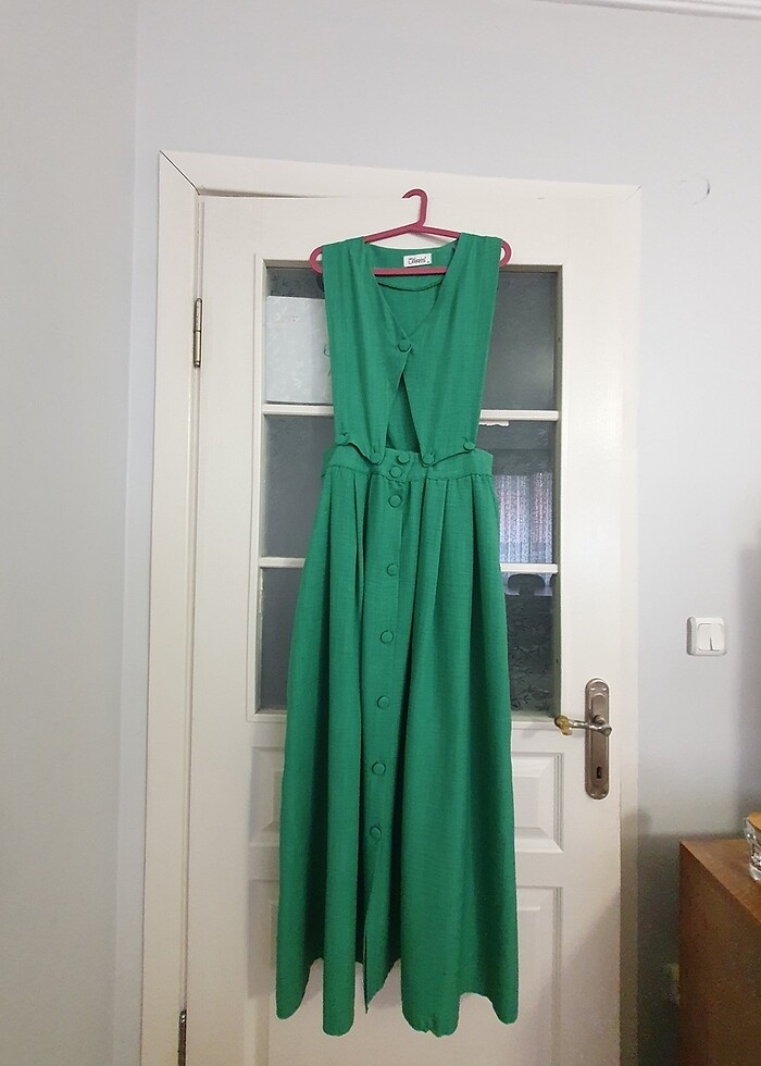2-3 defa özel günde giyildi. Beden 36’dır etek genişliği basen olarak 40/42 bedene kadar uyumludur. Keten kumaş Yeşil renk Yelek uzunluğu 47 cm Etek uzunluğu 95 cm Astarsızdır Etek ve yelek birbirinden ayrılıyor. Tek olarakta kullanılır.
