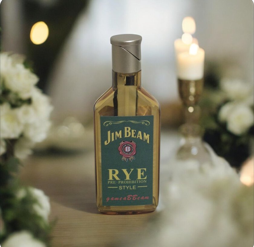 Parlak bej renkte Jim Beam Rye kolonyası, yasak öncesi tarzından ilham almıştır. Vintage karşı kültür havası ve özgün etiket tasarımı bulunur. ️