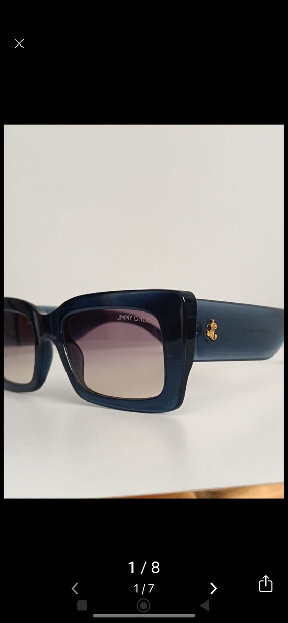 Jimmy Choo kadınlar için lacivert parlak çerçeveli, klasik kare şekilli ve hafif degrade lensli güneş gözlüğü, sokak stiline uygun.