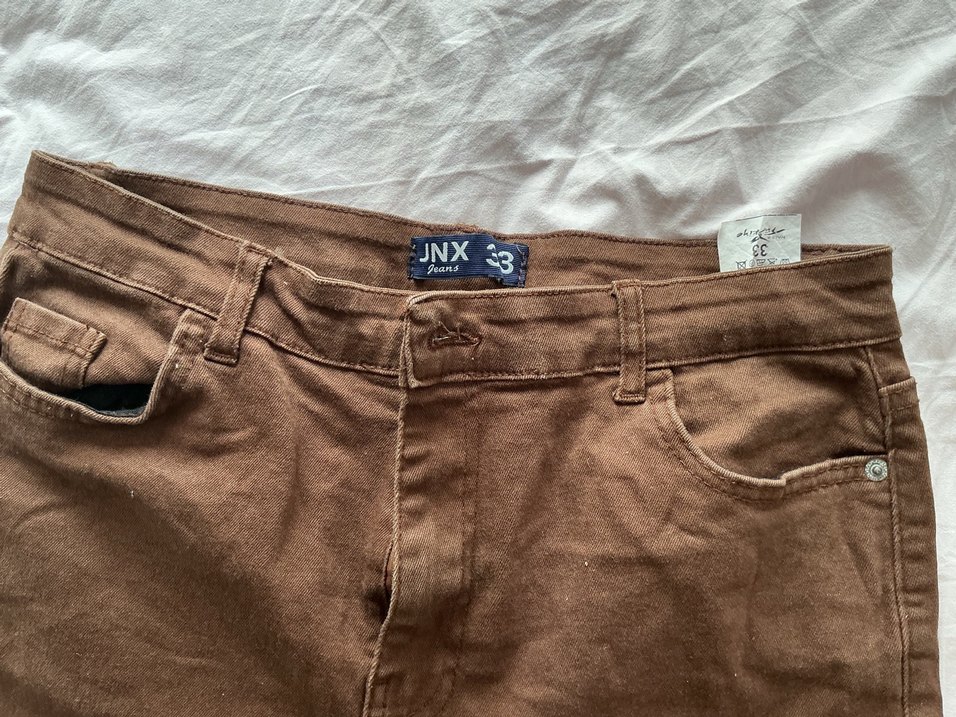 JNX markalı, yumuşak esnek cotton kumaştan yapılmış, kahverengi, kemerli ve dar kesim pantolon. Normcore tarzıyla günlük kullanıma uygundur. Pantolunun boyum 95 cm dir.