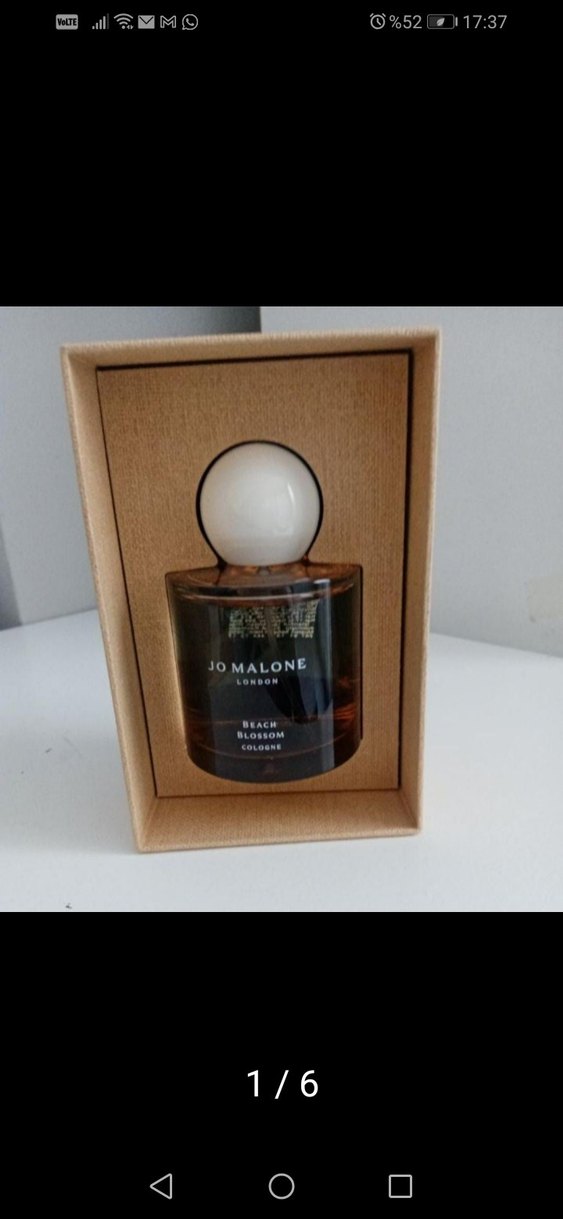 Jo Malone Beach Blossom kadın parfümü, yuvarlak beyaz kapaklı şık şişede, ferah ve çiçeksi kokusu ile sunulmaktadır.