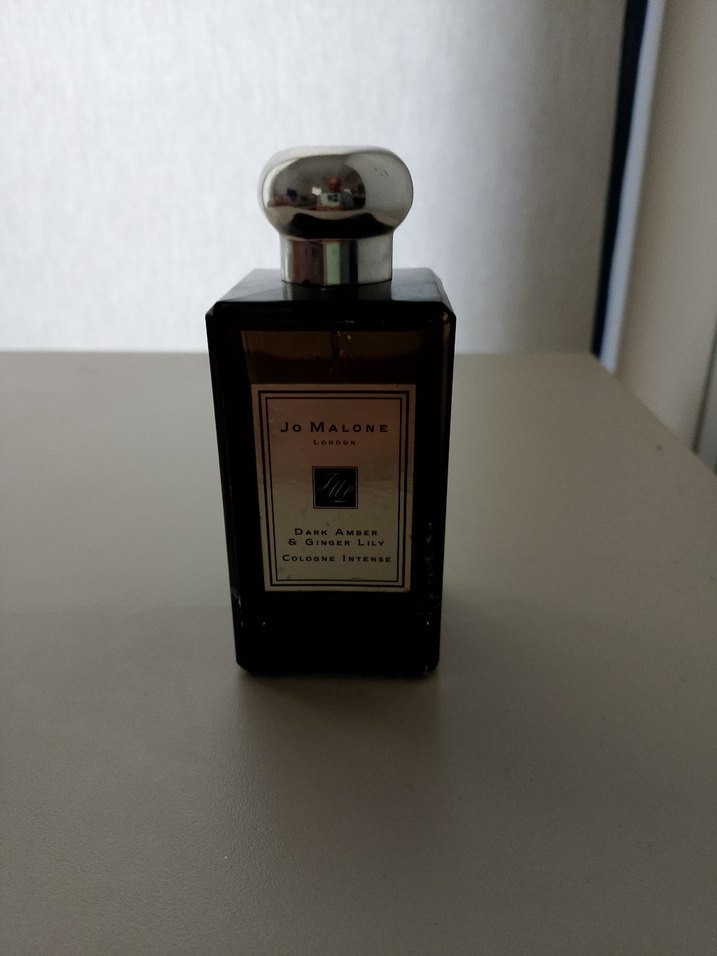Jo Malone Dark Amber & Ginger Lily kadın parfümü, koyu renkli şişede ve gümüş kapaklıdır. Sıcak amber ve taze zencefil zambağı kokuları içerir. Orjinal batch kodlu ürün 100 ml edp formundadır