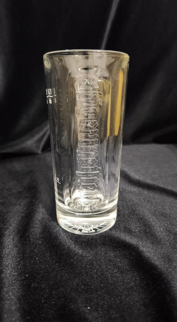 Kabartmalı işaretlere ve sağlam tabana sahip şeffaf cam Jögermeirter bardağı