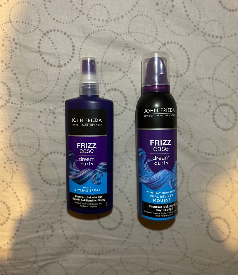 John Frieda Frizz Ease Dream Curls günlük saç spreyi ve bukle canlandırıcı köpük, kabarmayı azaltır ve bukleleri belirginleştirir. İhtiyaç fazlası. Alalı yaklaşık 1-2 ay oldu. En fazla 3-5 kez kullanıldı. 2li fiyattır. Ayrı almak için ilan açtırabilirsiniz.
