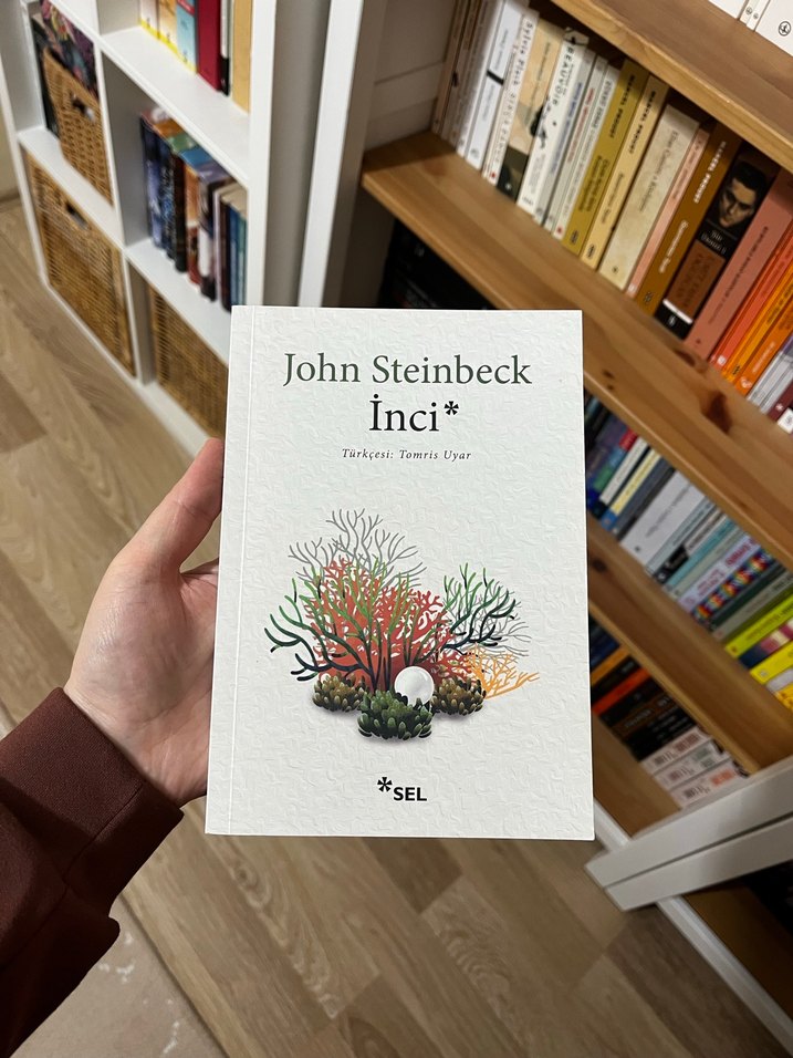 John Steinbeck'in "İnci" romanı Tomris Uyar çevirisiyle SEL tarafından yayımlandı. Kapakta mercan illüstrasyonu bulunuyor. Kitabın hiçbir hasarı yoktur