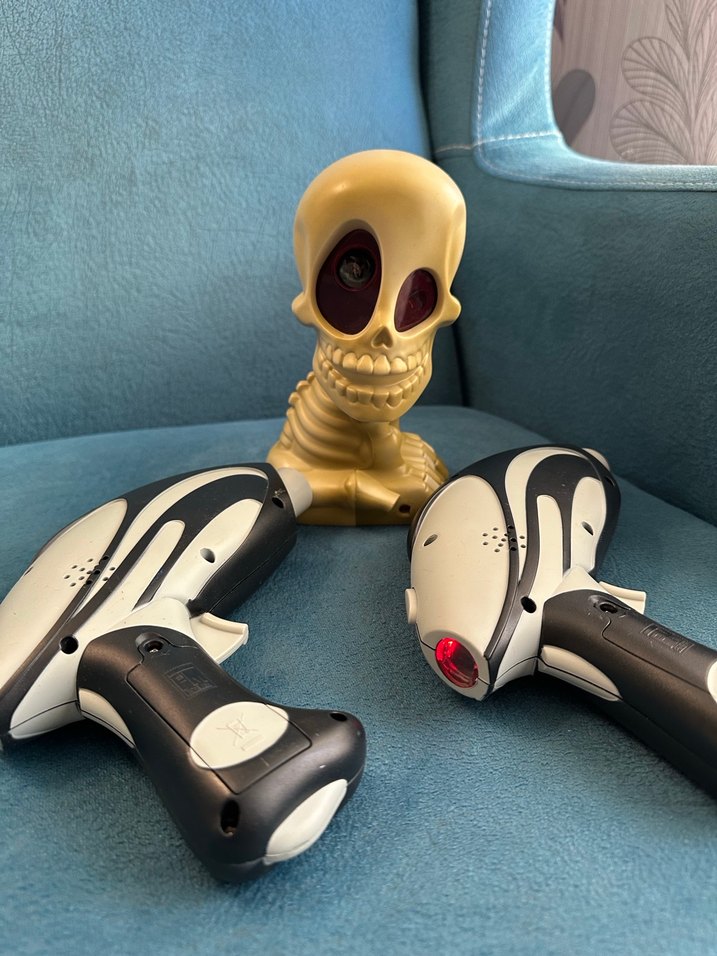 Johnny skull hayalet avı kutu oyunu sorunsuz bir şekilde çalışıyor normalde kutusundan bir adet silahı çıkıyor ama ben bir adet daha veriyorum hepsi de pille çalışır fotoğrafları inceleyebilirsiniz