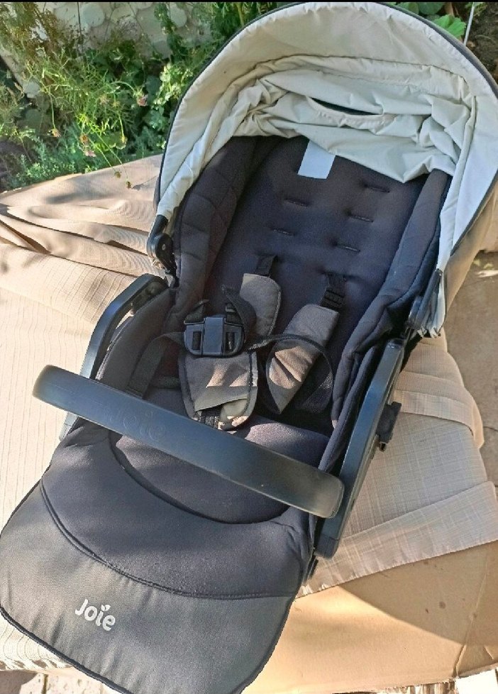 Joie gri bebek arabası, ayarlanabilir tente ve güvenli emniyet kemeri ile konforlu kullanım sağlar. renk solmasi var