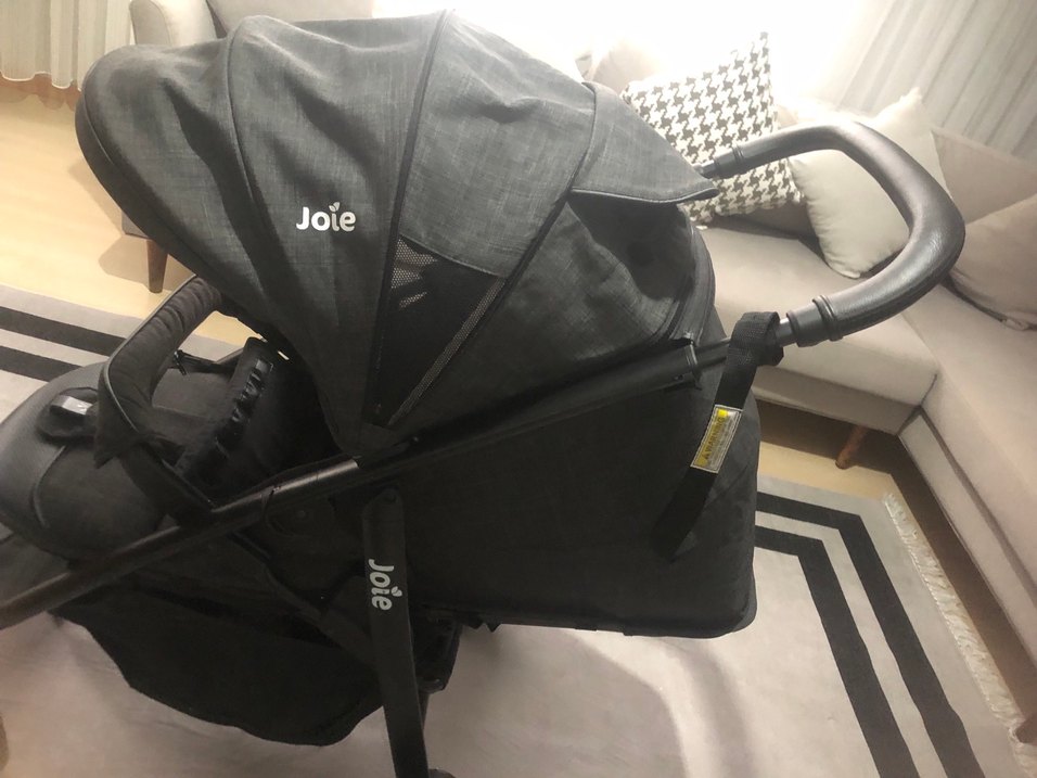 Joie markalı koyu gri bebek arabası, sağlam yapısı ve geniş tente ile konfor ve güvenlik sunar. Tutma kolu kullanışlıdır. Hiç bir sıkıntısı yok çok az kullanıldı pusetide var