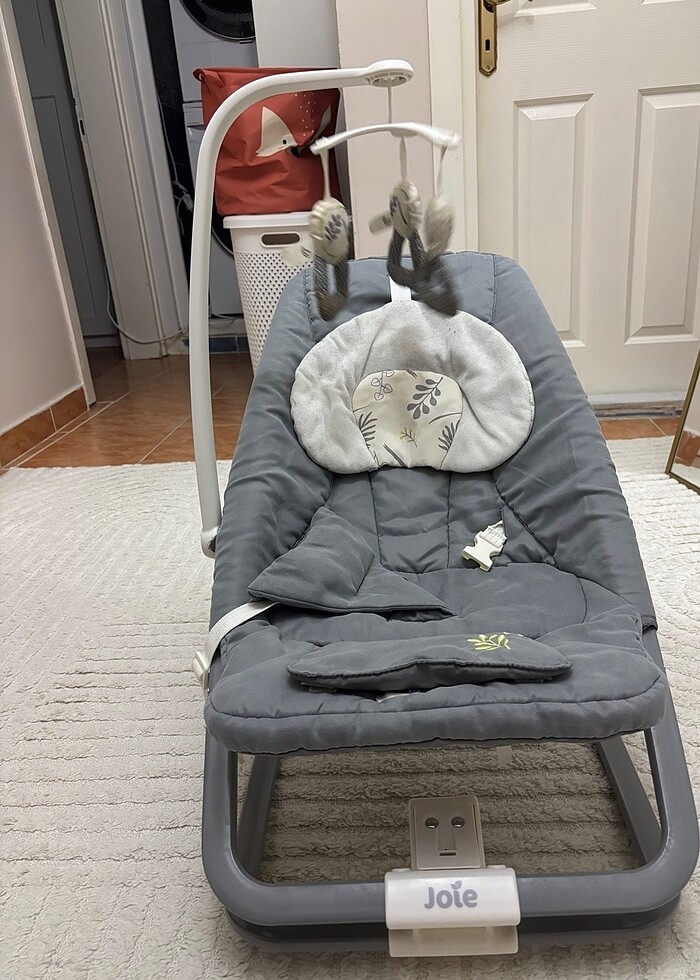 Joie marka ana kucağı, çok az kullanıldı. Titreşimi ve müziği mevcut. Pilli. Özellikle titreşimi ilk aylardaki gazda çok işe yarıyor. Üstteki sallanan oyuncak bebekler için dikkat çekici oluyor. Kılıfı yıkanabiliyor. Sıfır tadında.