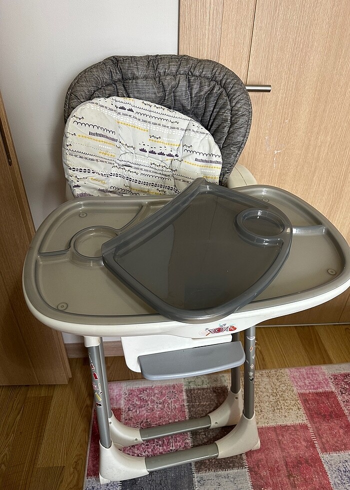 Joie marka mama sandalyesi ek tepsisi ve minderi var. Sadece minderinin kenarı yırtılmış kullanıma engel değil