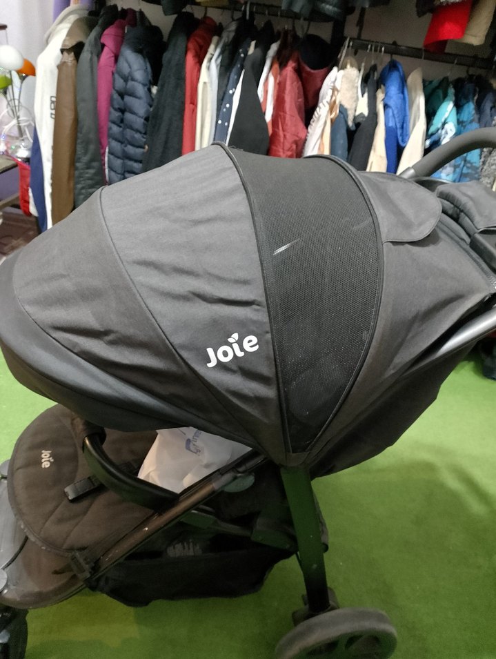 Joie marka siyah bebek arabası, güneşlikli ve sağlam yapıya sahip pratik kullanımlı bir üründür.