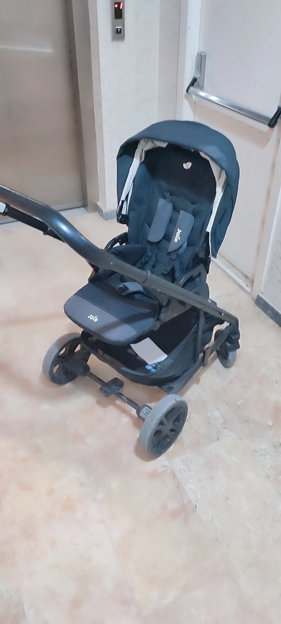Joie marka siyah ve gri renkli bebek arabası, yastıklı oturma alanı ve ayarlanabilir tente ile konfor sağlar. Dayanıklı tekerlekleri kolay hareket imkanı sunar.