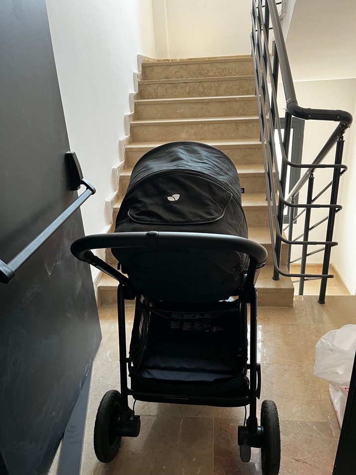 Siyah bebek arabası, geniş tente ve sağlam tekerleklerle rahat kullanım travel sistem
