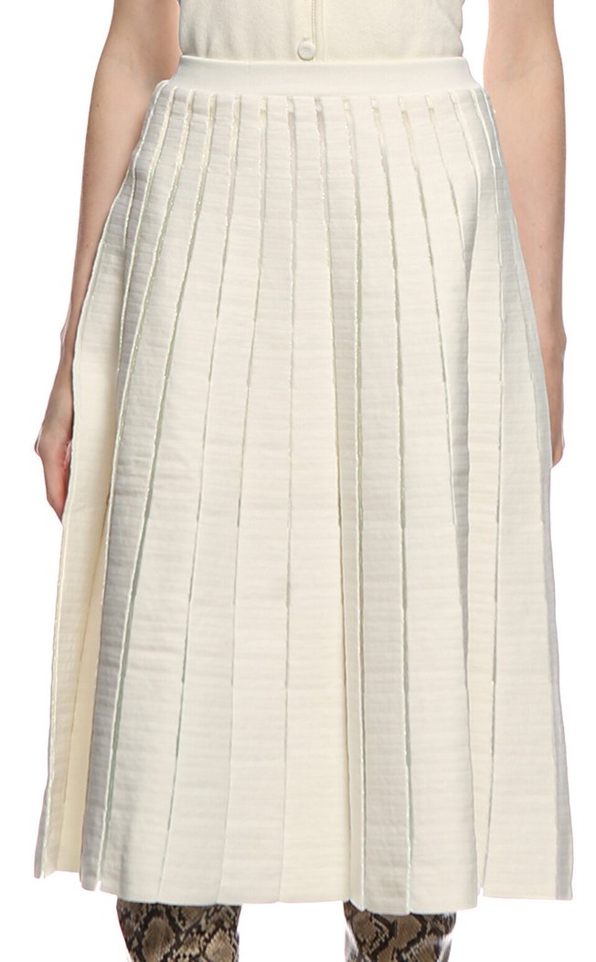 Beyaz renkte, pilili detaylara sahip etek.JOİNUS marka etiketli