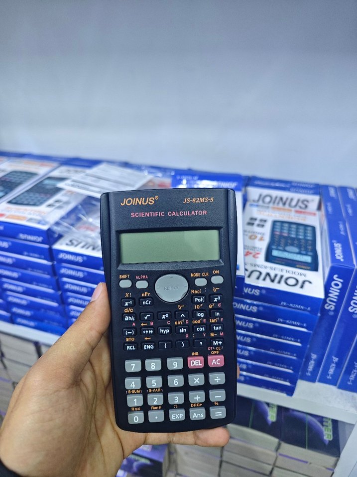 JOINUS JS-82MS-5 bilimsel hesap makinesi, koyu renkte, çok fonksiyonlu tuşlar ve net ekran ile karmaşık hesaplamalar için uygundur. Optik karakter tanıma özelliği vardır.