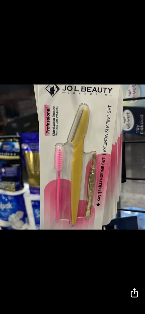 JOL Beauty kaş şekillendirme seti, pembe fırça, sarı kaş jileti ve cımbız içerir. ✂️