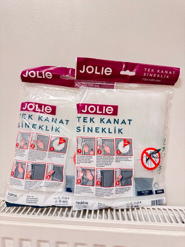 2li fiyat Jolie tek kanat sineklik, gri-beyaz renklerde ve baskılı desenlidir. Ölçüsü 75x125 cm olup sineklerin girmesini engeller.