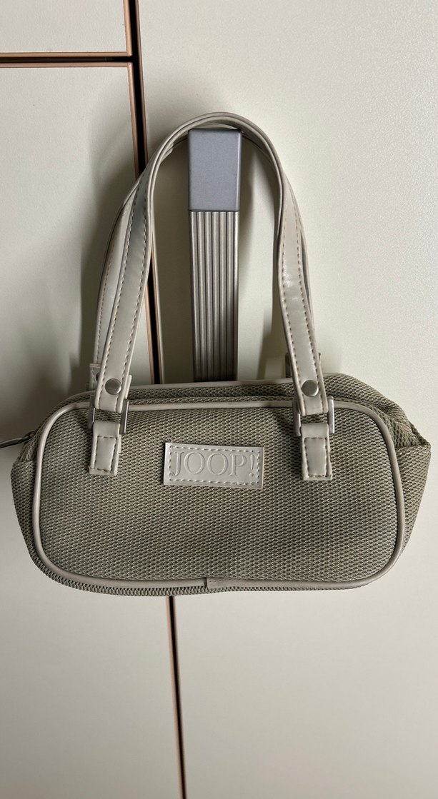 Joop! markalı, fermuarlı kapamalı bej kadın çantası. Sentetik kumaştan üretilmiş, modern klasik ve minimalist tasarıma sahip, günlük kullanıma uygun.