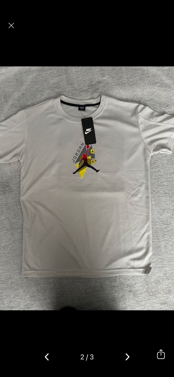 Gri renkte, Jordan baskılı, yuvarlak yaka ve kısa kollu erkek tişörtü. Sentetik kumaştan, rahat kesimlidir ve sportif şıklık sunar.