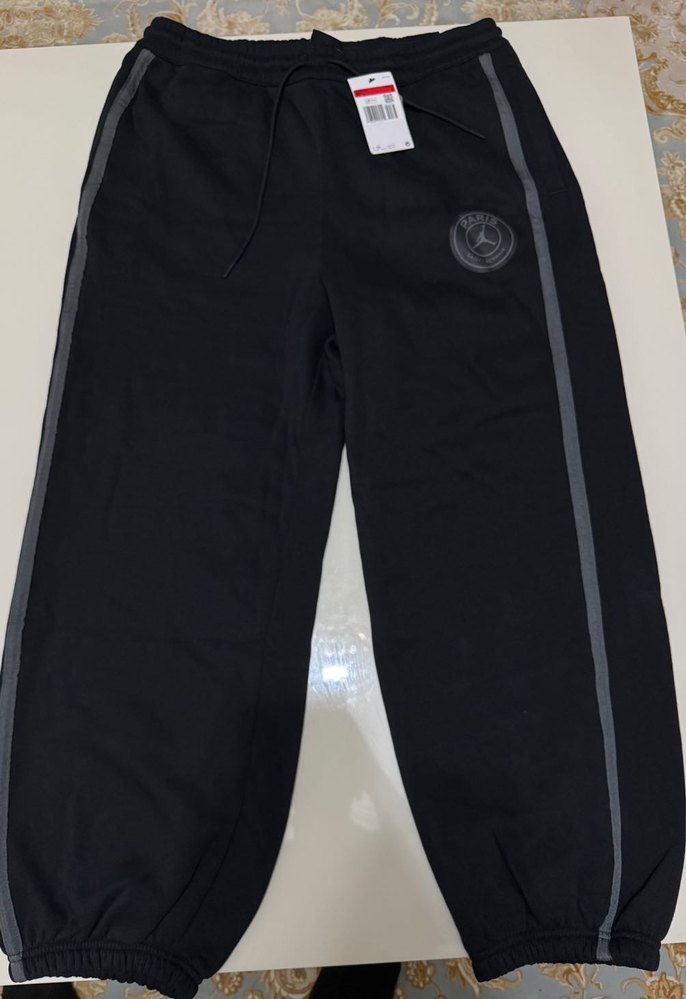 Siyah, bol kesim ve normal boyda, bel bağcığı ve yan şeritleri olan erkek eşofman altı. Yumuşak ve sıcak kumaştan, spor ve günlük kullanıma uygun. Sıfır orjinal L beden etiketli faturalı