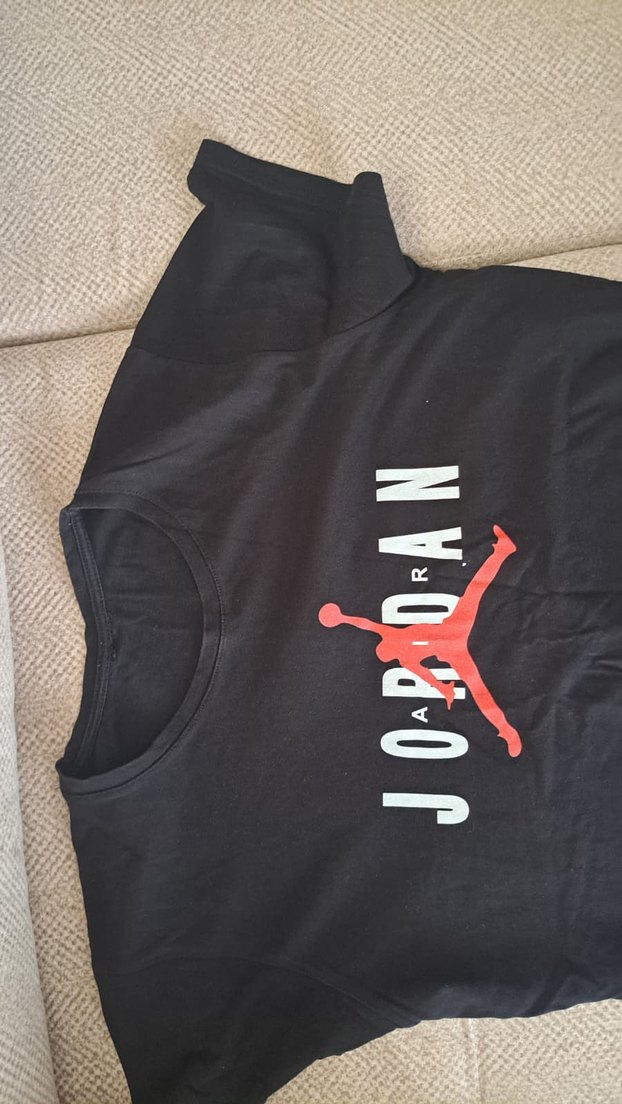 Jordan markalı bu siyah erkek tişörtü, yuvarlak yaka ve kısa kollu, rahat kesimdir.
