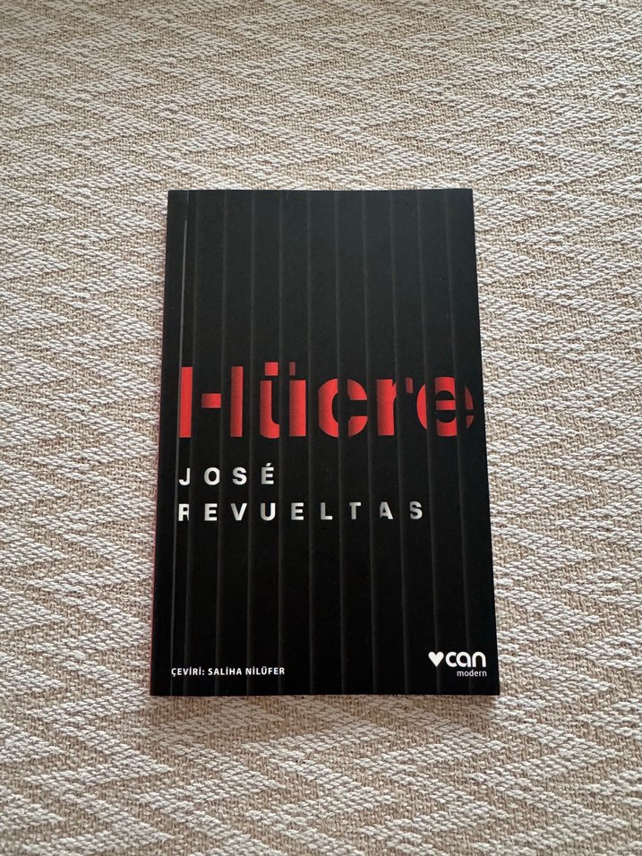 José Revuelta'nın "Hücre" adlı romanı, Can Modern yayınevi tarafından siyah kapak üzerinde kırmızı ve beyaz yazılarla sunuluyor.