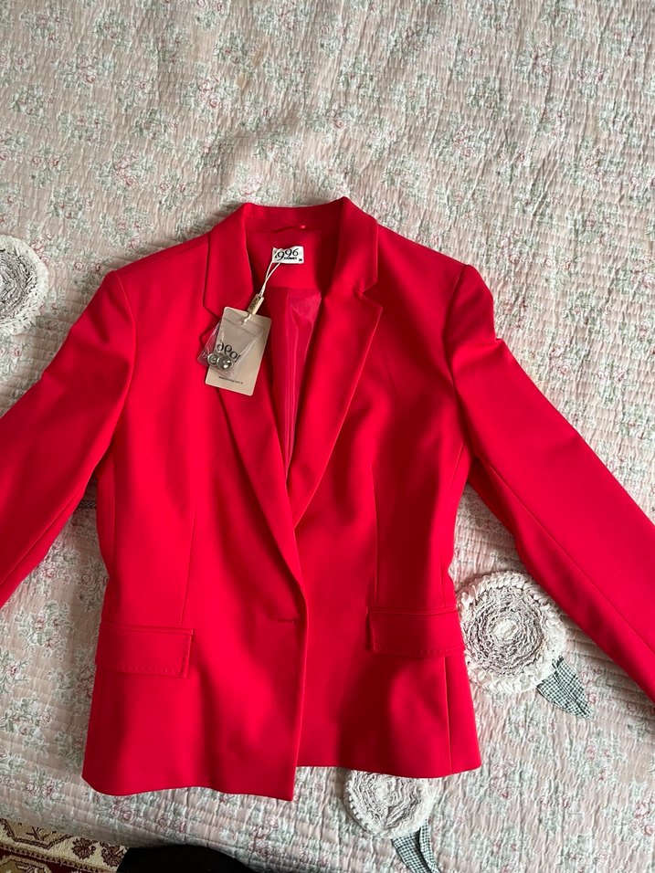 Sıfır etiketli. Düğmeli ön kısmı, uzun kollu ve normal kesim kırmızı blazer, ofis kullanımı için uygundur. ✨
