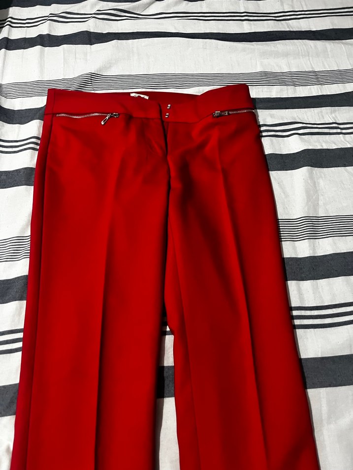 Kadınlar için kırmızı, fermuarlı cepli, normal boy kumaş pantolon. Parlak sentetik kumaştan, ofis ve sokak stiline uygun.2 defa 23 nisan töreninde giydim hiç bir kusuru yok şişmanladım mağaza fiyatıyla karşılaştırın çok uygun