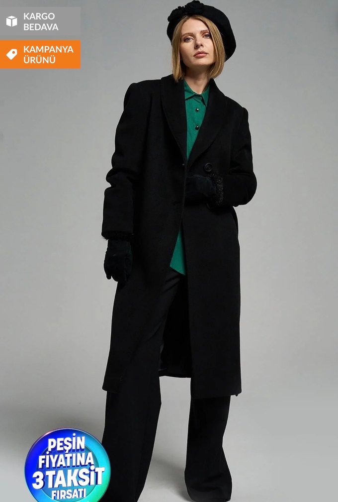 Klasik kesim, uzun kollu siyah uzun kadın kaban. Soğuk havalar için uygun. S 36 bedendir, sorunsuzdur siyah renk Yeni kabanlar aldım onun için satıyorum