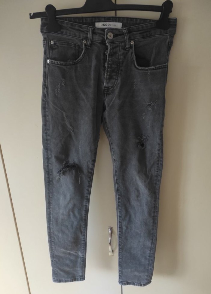 Boy 93 cm paça 14 cm bel 38 cm'dir.Tadilat gören bölge ve ufak tefek problemleri belirtildi.Renk füme.