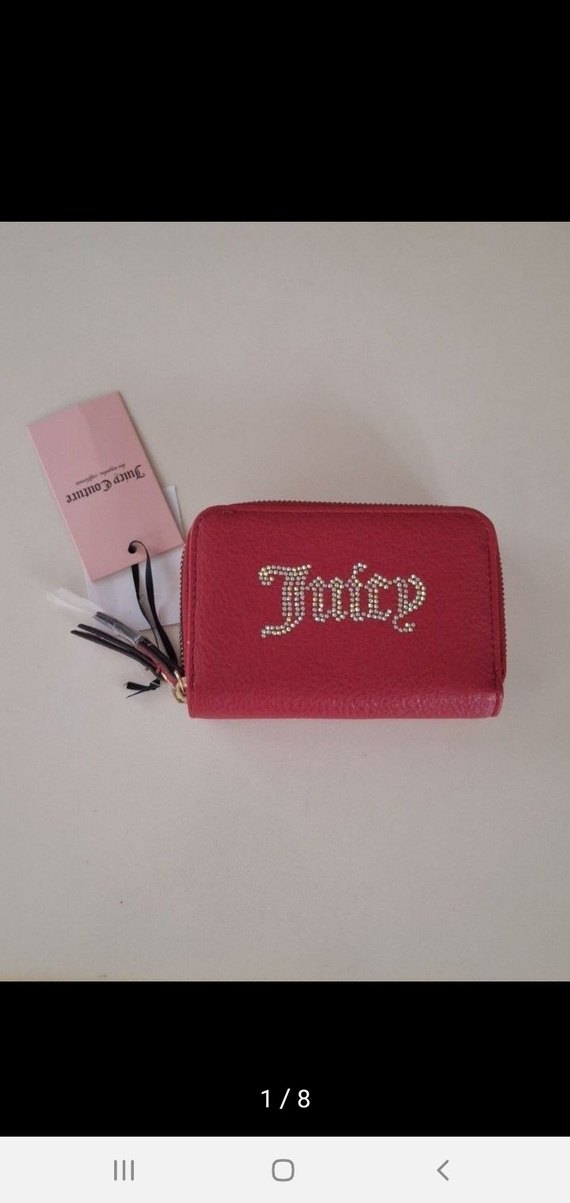 10-14,5 cm ölçülerinde iki fermuarlı bölümün birinde kağıt para bölmesi kimlik penceresi 5 kartlık 2 bölme bulunuyor. Diğer fermuarlı kısım bolmesiz. Önde taşlı Juicy yazılı. Son görselde görülen biçimde bir beyaz nokta mevcut #juicycouturecanta #juicyCouturecuzdan #juicycoutureKartlık #Cüzdan #kartlık #juicycouture #y2k #keşfet #kirmizicuzdan