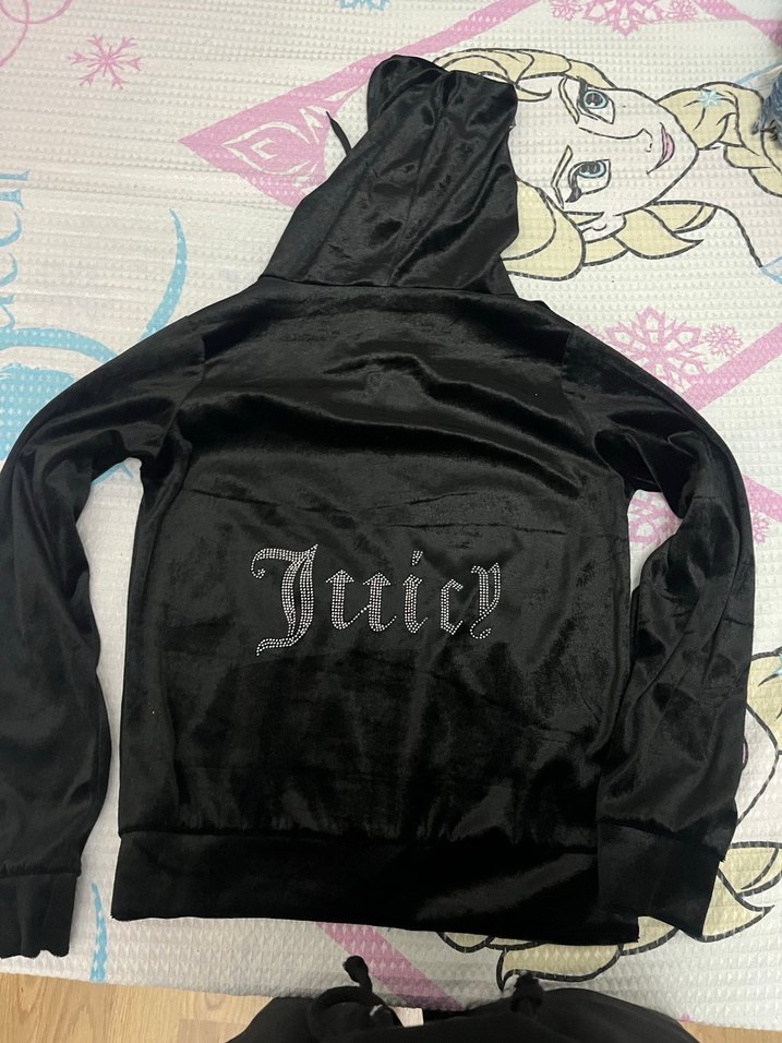 Siyah renkli, kapüşonlu, askılı kollu ve mini boy kadın eşofman. Fermuarlı ve nakış detaylı, gotik athleisure tarzında. Sentetik kumaştan, dış mekan kullanımı için uygun.