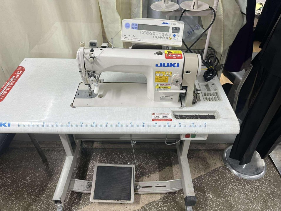 JUKI beyaz endüstriyel dikiş makinesi, dayanıklı yapısı ve hassas dikiş için elektronik kontrol paneli ile birlikte gelir. Ayak pedalı mevcuttur.