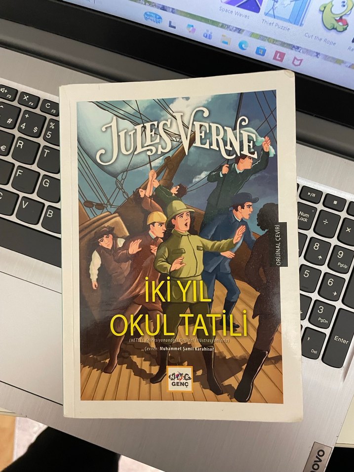 Jules Verne'in "İki Yıl Okul Tatili" adlı kitabı, bir grup çocuğun adada hayatta kalma ve macera dolu hikayesini anlatıyor. ️♂️