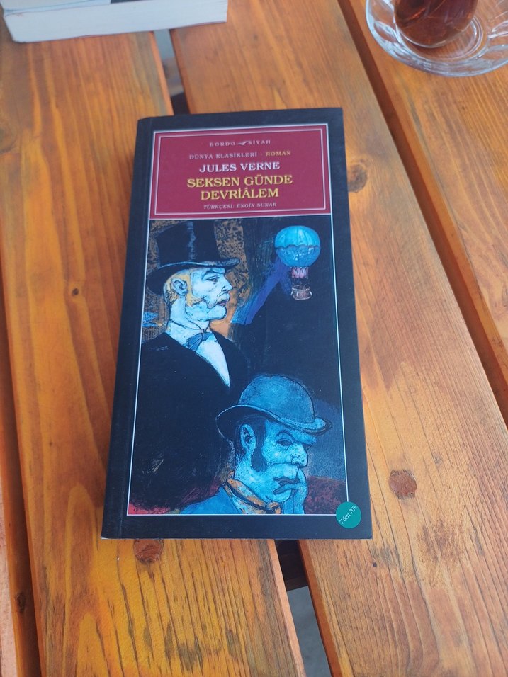 Jules Verne'in "Seksen Günde Devrialem" adlı macera romanı. Kapakta karakterler ve sıcak hava balonu çizimi var. 80 GUNDE DEVRIALEM JULES VERNE 2006 basim 380 sayfa cok temiz kondisyonda bordo siyah yayinlari