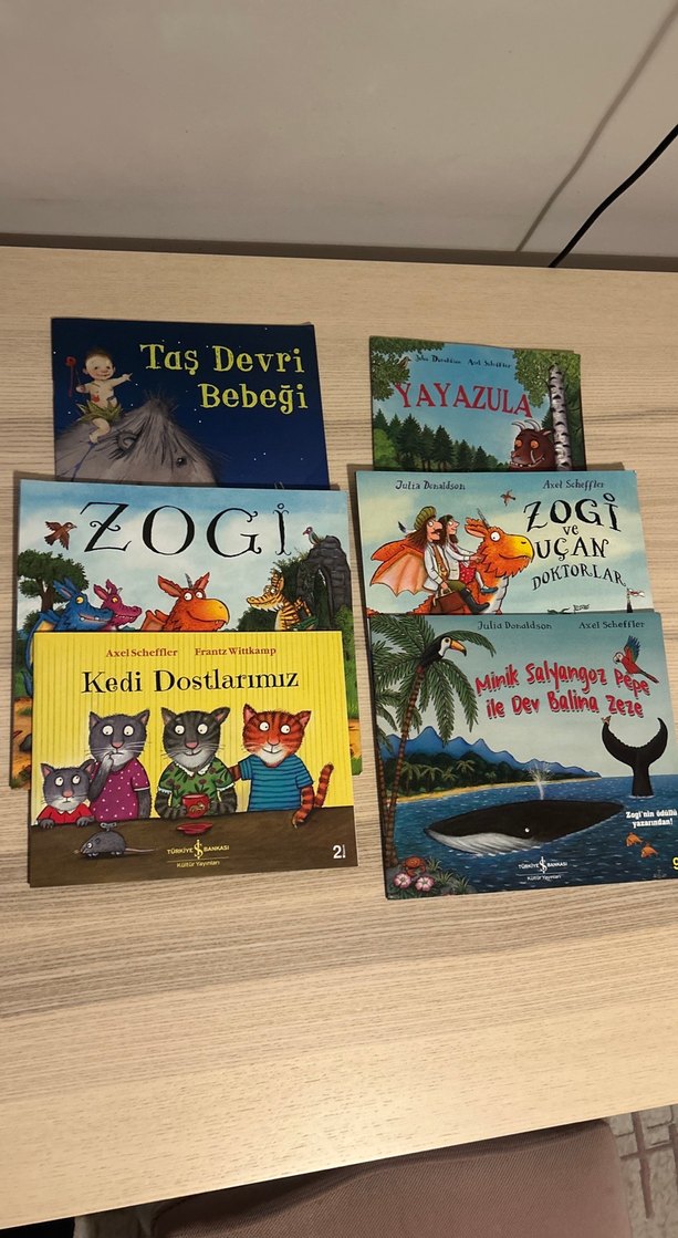 Julia Donaldson alex Scheffler kitapları seçkisi. Taş Devri Bebeği, Yayazula ve Kedi Dostlarımız gibi renkli resimli çocuk kitaplarından oluşan bir set. Eğlenceli hikayeler içerir.