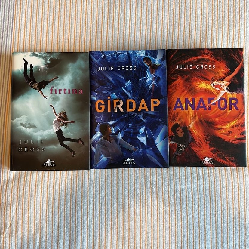 Julie Cross'un Pegasus yayınevinden çıkan Fırtına, Girdap ve Ana adlı üç romanı bir arada. Her kitap hareketli kapak tasarımına sahip.