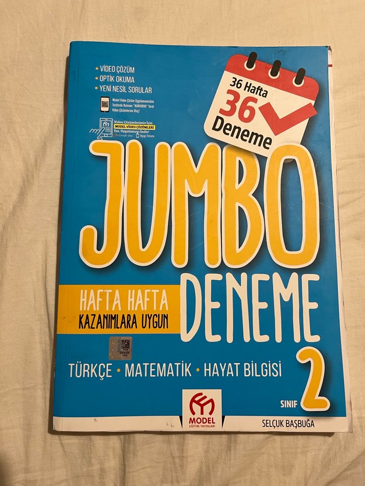2. sınıf için hazırlanmış, Türkçe, Matematik ve Hayat Bilgisi konularını kapsayan, haftalık 36 denemeden oluşan kazanımlara uygun kitap.
