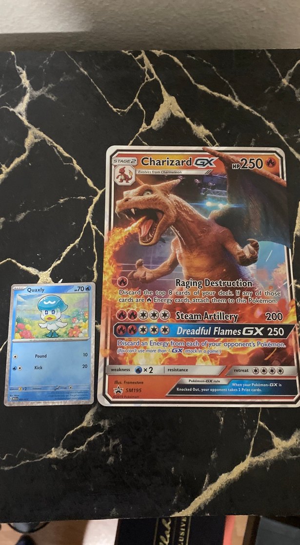 Charizard GX Pokémon kartı, 250 HP ile Raging Destruction, Steam Artillery ve Dreadful Flames GX saldırılarına sahip. Koyu deve tüyü tonlarında.