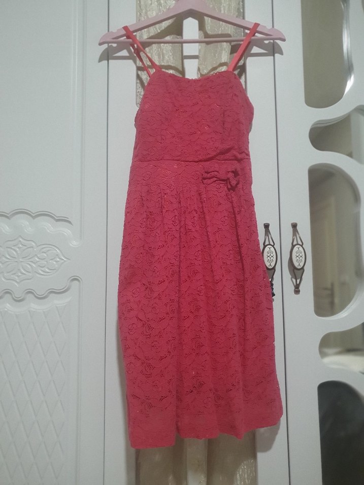 JUMENT Narcicegi rengi dantelli ve ince askılı, bohem tarzda, elbise etek kısmın minik bir renk atması var yok arası