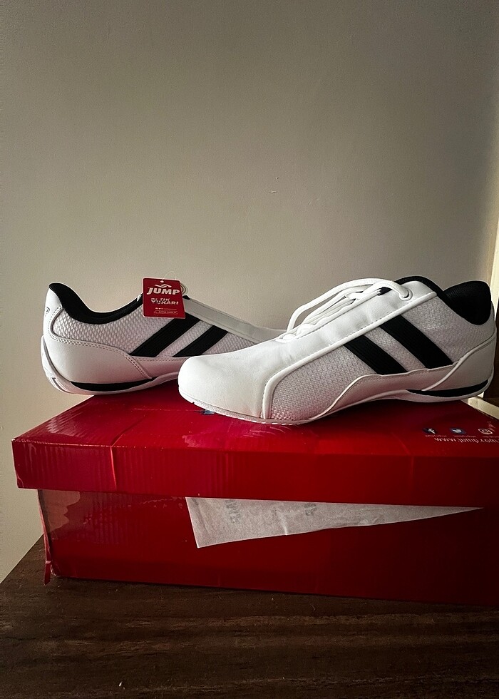 Jump erkek spor ayakkabı 41 numara beyaz. Sıfır ürün hiç kullanılmamıştır.