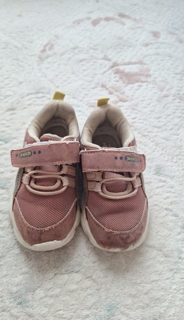 Pastel pembe renkli, cırtcırtlı bantlı ve kauçuk tabanlı kız çocuk spor ayakkabısı. Rahat ve günlük kullanıma uygun.