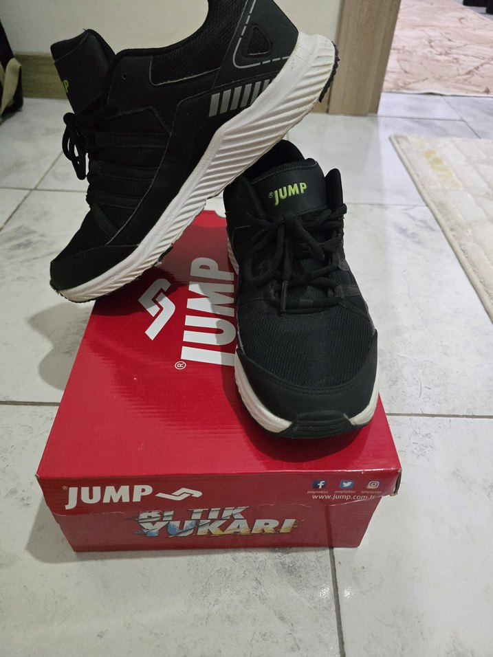 JUMP markalı siyah erkek koşu ve antrenman ayakkabısı, kaymaz kauçuk taban ve cırt cırtlı bant ile sokak modasına uygun sportif stil sunar. 42 numara tertemiz cok kullanılmadı