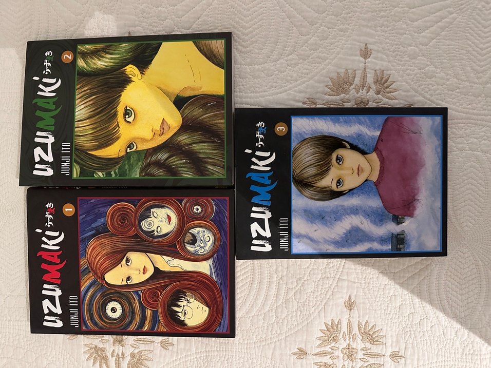 Junji Ito'nun Uzumaki manga seti, detaylı ve korkutucu çizimlerle dolu.