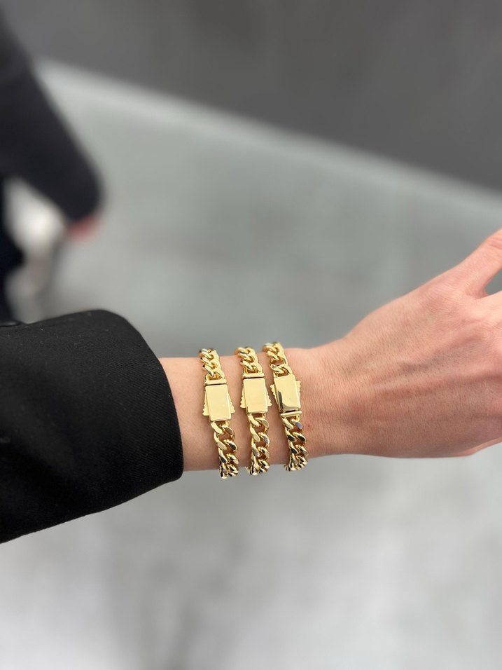 Günlük kullanıma uygun, zincir detaylı, parlak altın renkli, desen içermeyen sade kadın bilekliği. ✨