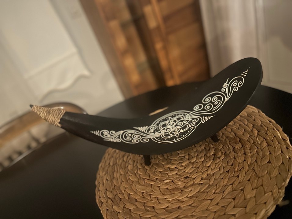 Bu kahverengi hafif ve bohem çanak şeklinde obje, jüt ip bağlama detayları ve karmaşık bohem desenlerle retro ve hippie tarzlarını birleştirir. Dresuar, giriş veya sehpalarda hoş bir kullanım sunar.