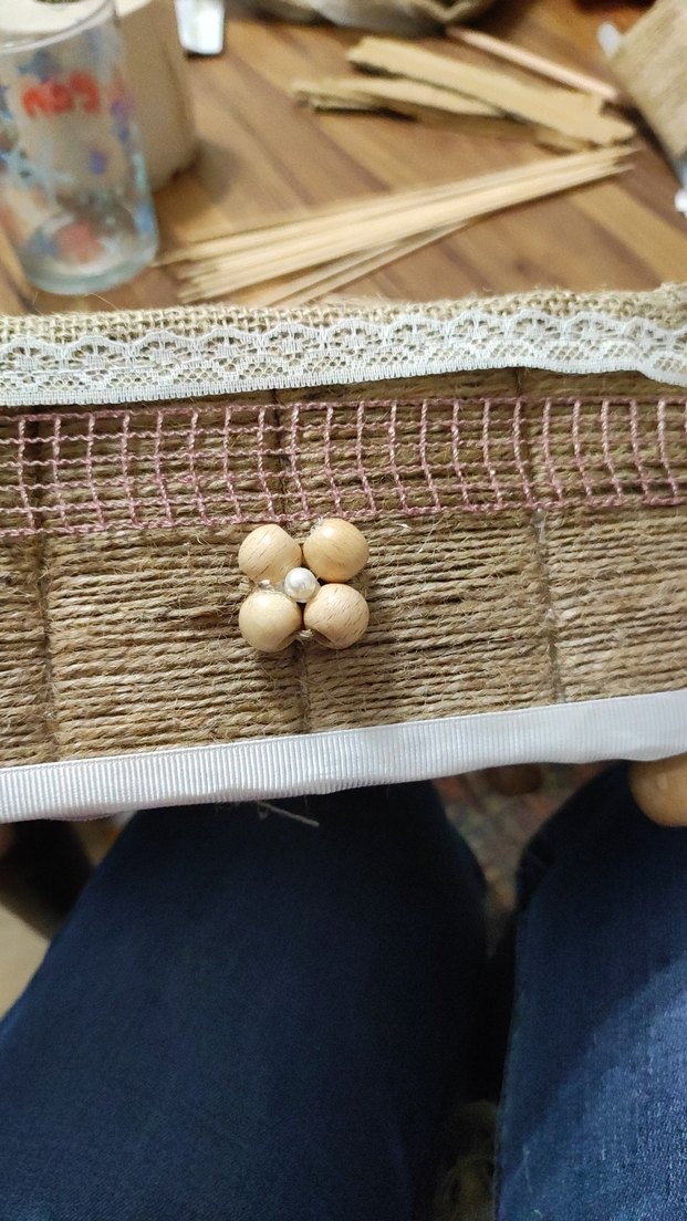 el yapımı Dantel ve ahşap boncuk çiçek detaylı jüt Sepet .Eşyalarınızı düzenlemek için uygundur.