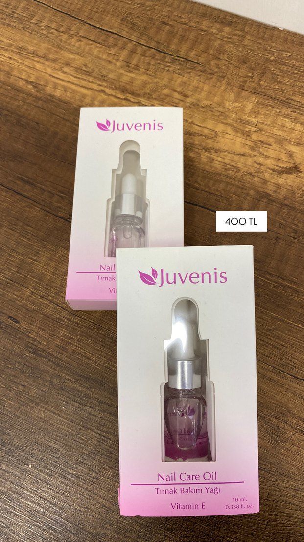 Juvenis markasına ait pastel pembe kutuda tırnak bakım yağı. Tırnakları besleyip korumaya yardımcıdır. Fiyatı 400 TL.