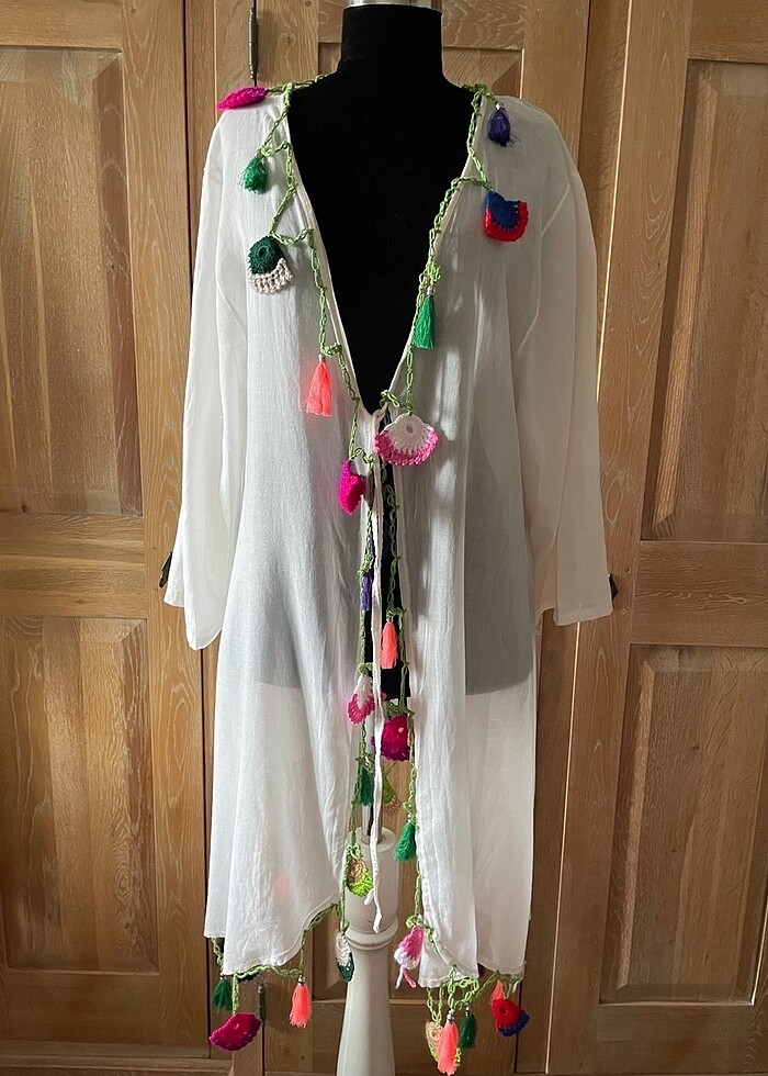 Otantik 0 koton pamuk kumaş iki kol arası 50 santim en kısa yeri 80 santim asimetrik uzun Pareo