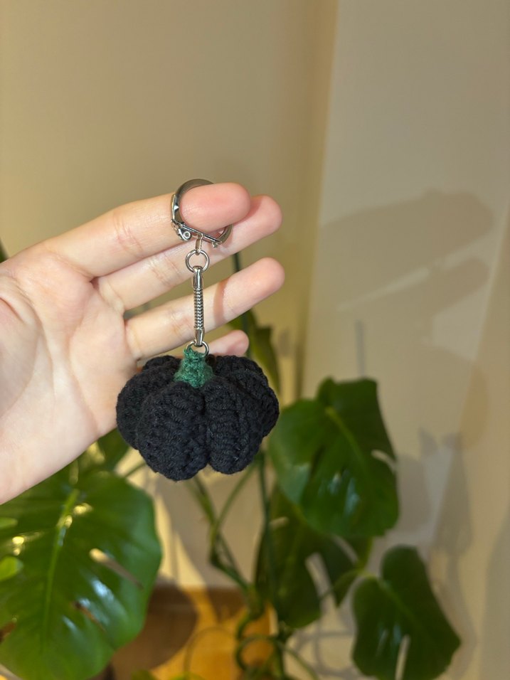 Siyah kabak anahtarlık,kombinlerinize hava katar. Turuncu ve gri renklisi de mevcuttur.Anahtarlarınıza ve kombininize benzersiz bir dokunuş sağlar.